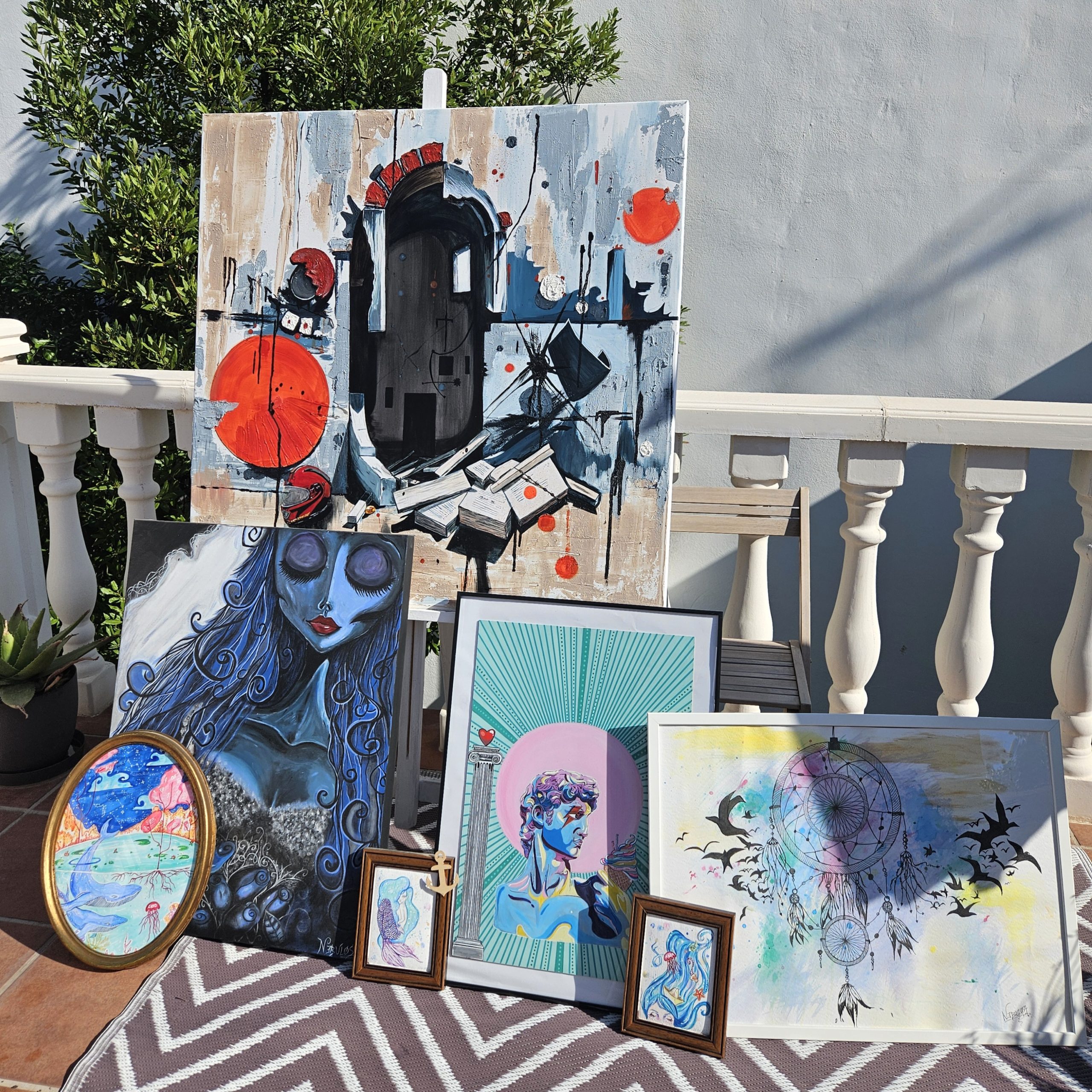 Pinto desde los 4 años. Con el pincel como brújula, convierto emociones, duelos y aprendizajes en obras que hablan un lenguaje simbólico. Cada cuadro es un portal, acompañado de un poema o un texto que encripta su mensaje interior.